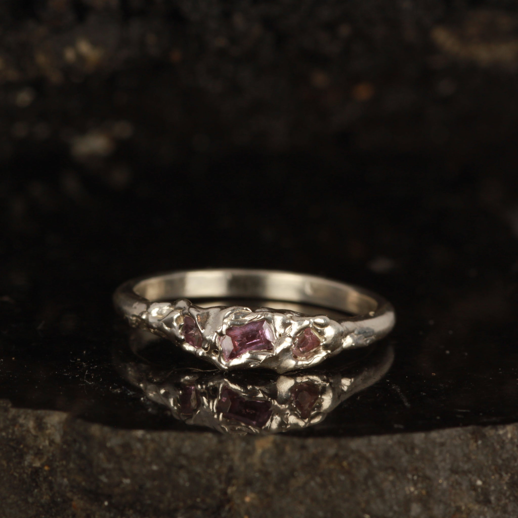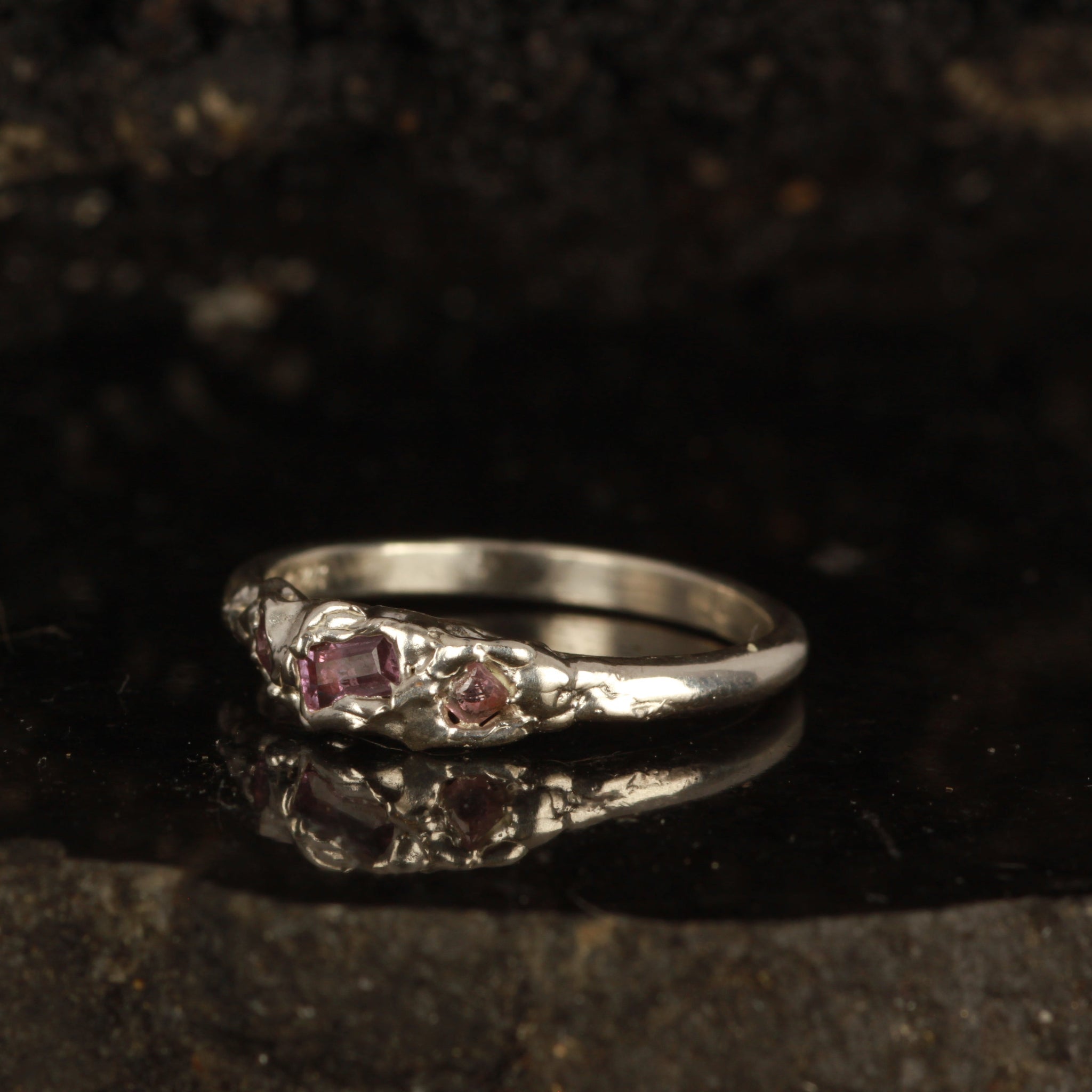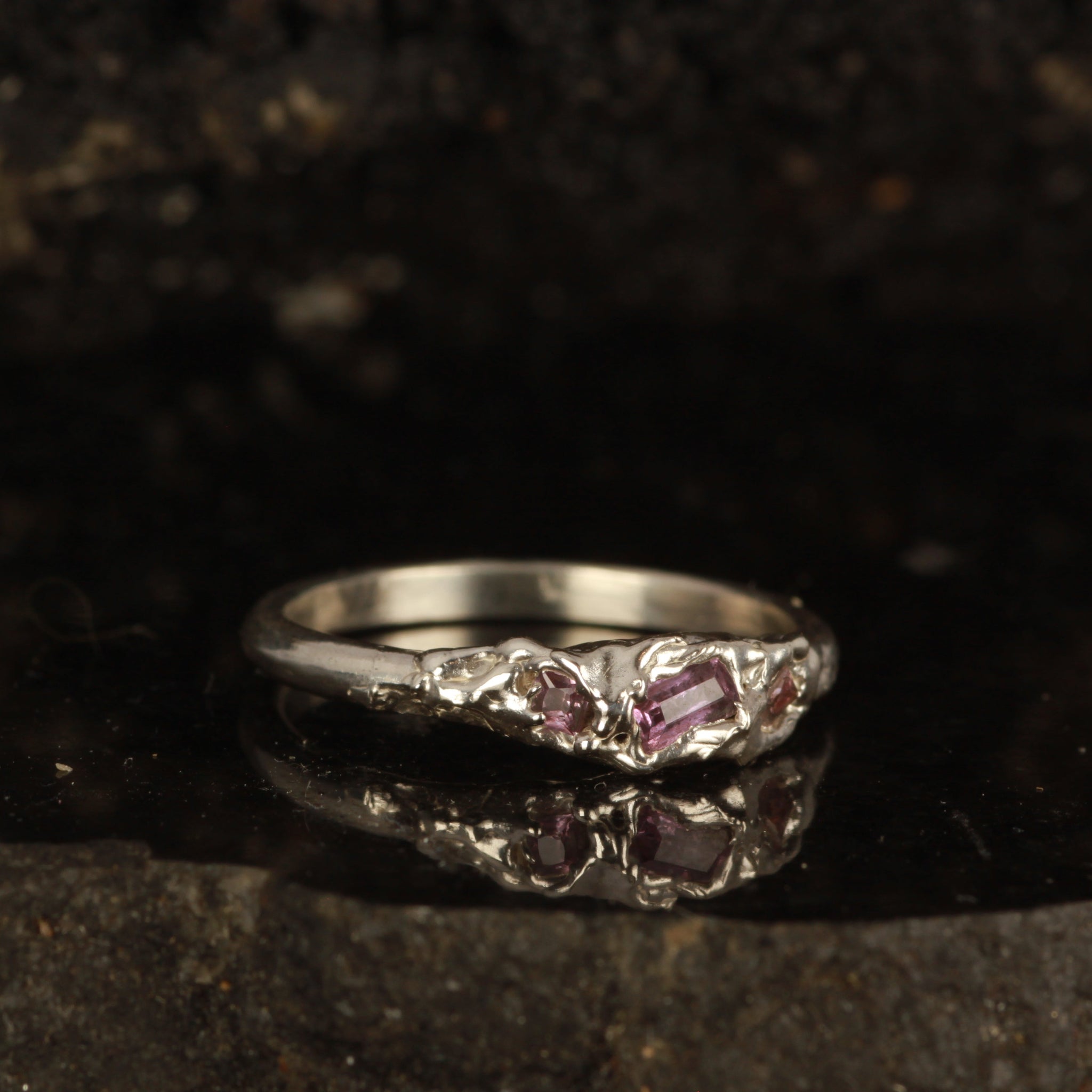 Solid 925 band with pink and purple natural sapphires set