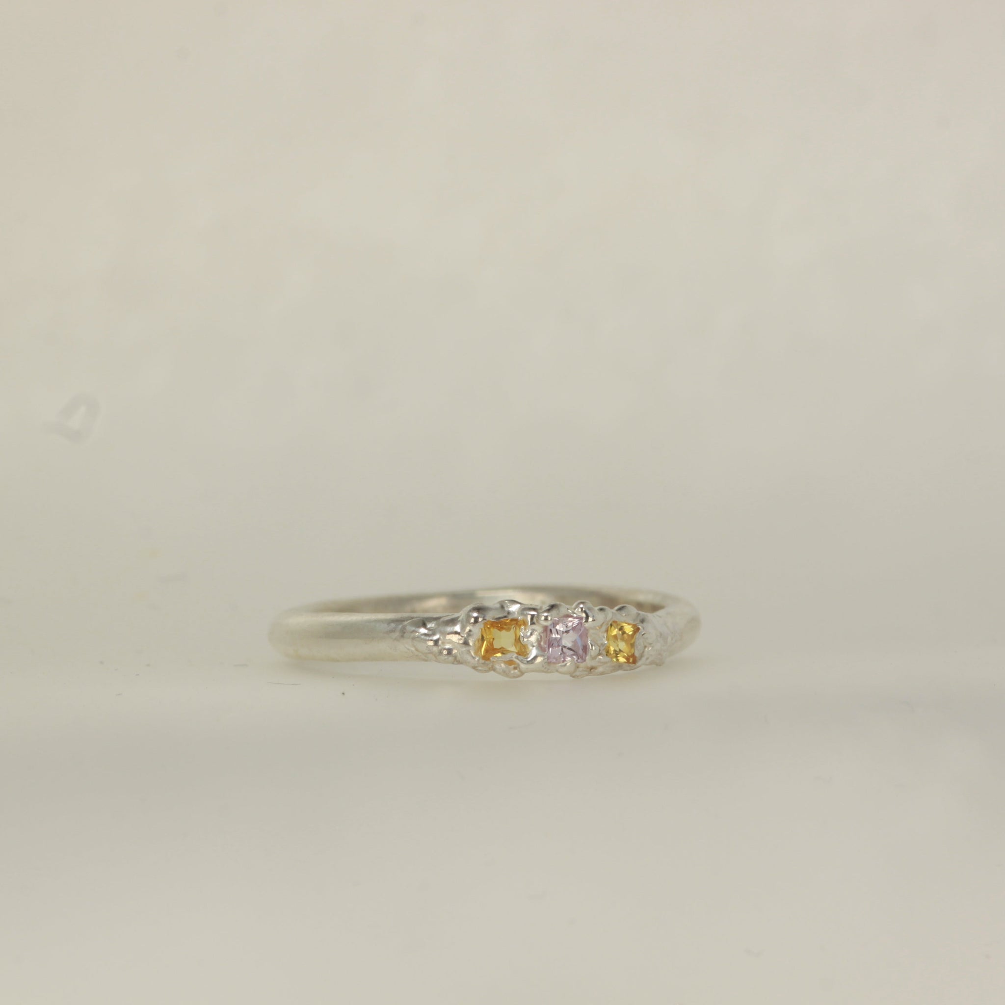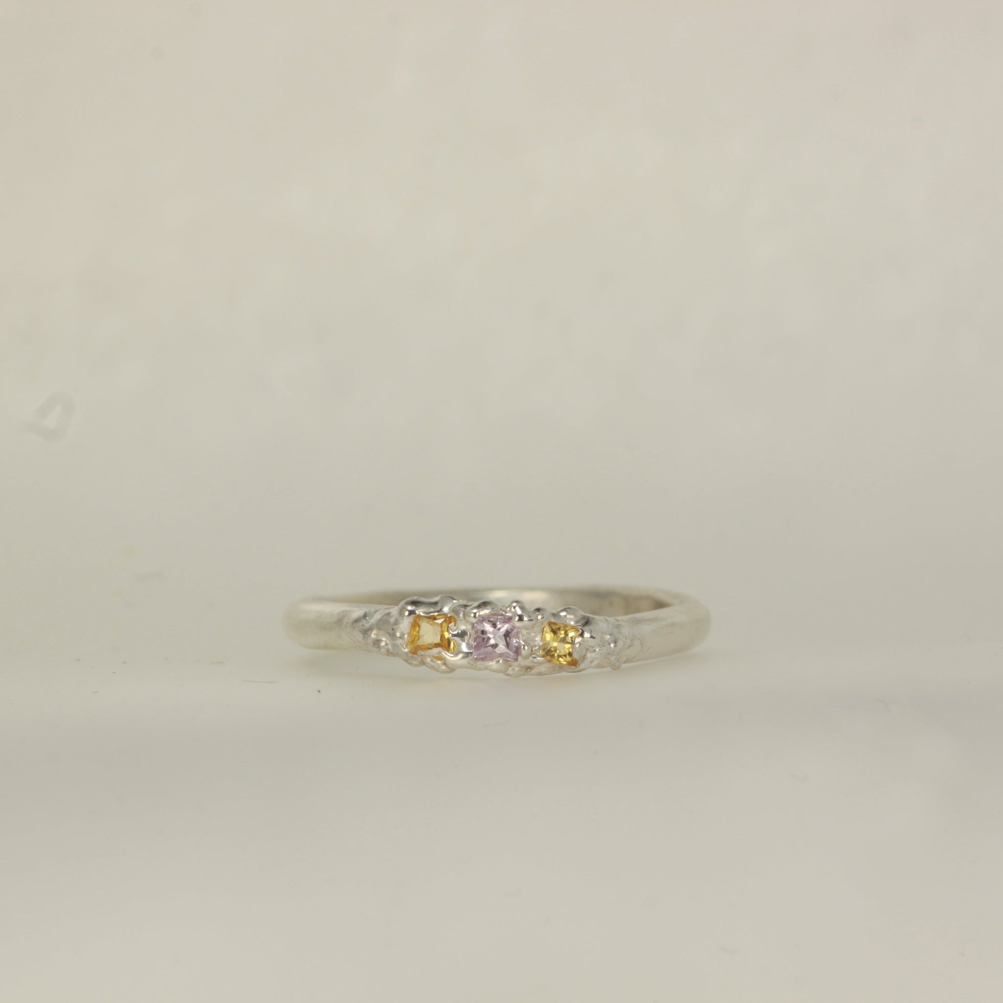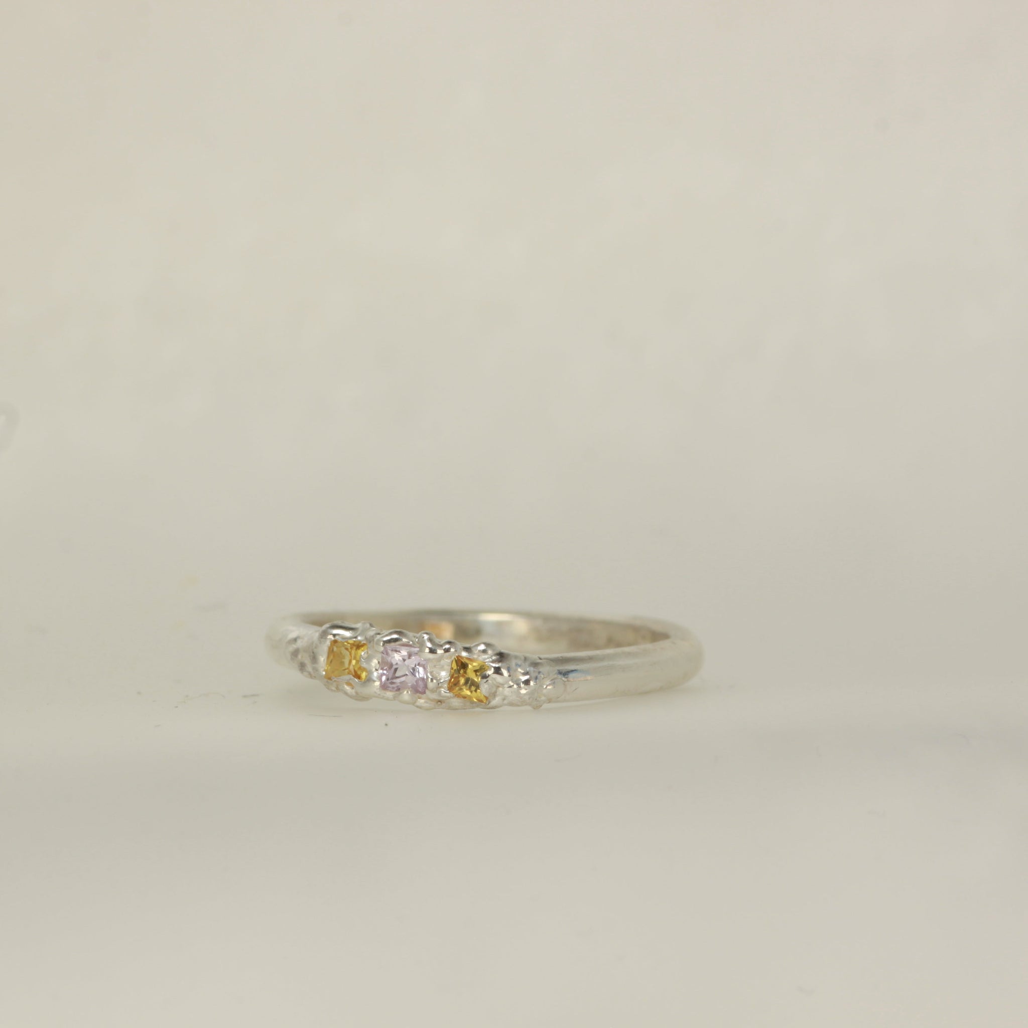 Solid 925 sterling silver ring with a natural princess cut yellow and pink sapphires